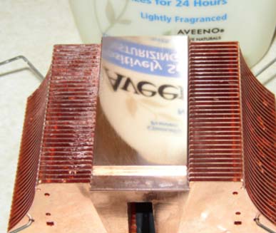 Carbon Black performance is strongly dependent on the pressure applied on the material. Below 100 psi, the compression is not sufficient to enable optimal conductivity of the carbon particles. We measured the amount of pressure required to disengage the bracket of the Thermalright SLK800 to be around 45 lbs, which translates into a pressure of roughly 90 lbs of the heatsink onto the processor's die of 108 mm2. Corresponding metrics are 42 kg/cm2 or ~4.1 MegaPascal or ~ 600 PSI. To the best of our knowledge, performance of AS is not pressure-dependent as long as there is enough pressure to warrant good contact.