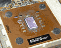 Top row: Arctic Silver Céramique imprint on both CPU die and bottom of the cooler. In reality, the residual film with the crescent-shaped striations is only a haze, however, the oblique angle of the flash brings out the coverage and makes it look much thicker than it really is.
